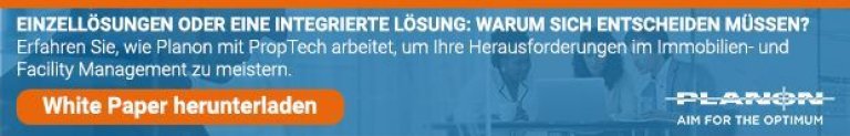 Möchten Sie mehr über die Sichtweise von Planon auf PropTech, über unsere neue Positionierung als Open Application Platform oder unsere Technologiepartner im Bereich Flächen- und Arbeitsplatzmanagement erfahren? Dann lesen Sie unser White Paper „Einzellösungen oder eine integrierte Lösung: Warum sich entscheiden müssen?“
