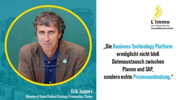 In diesem spannenden Podcast aus der Reihe L`Immo des Fachmagazins Immobilienwirtschaft beleuchtet der Host Jörg Seifert, Managing Editor bei der Haufe Group, die strategische Partnerschaft von SAP mit Planon und die Vorteile integrierter ERP- und Immobilienmanagement-Lösungen. Sein Gast ist Erik Jaspers, Director of Global Product Strategy & Innovation bei Planon, der im Interview interessante Details zur Partnerschaft aus erster Hand teilt.