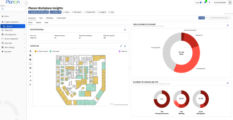 SWSM consolidates space data across the portfolio, enabling benchmarking, reconfiguration, and right-sizing based on actual usage. Mobile booking, issue reporting, and visitor management are supported via the Planon Workplace App.